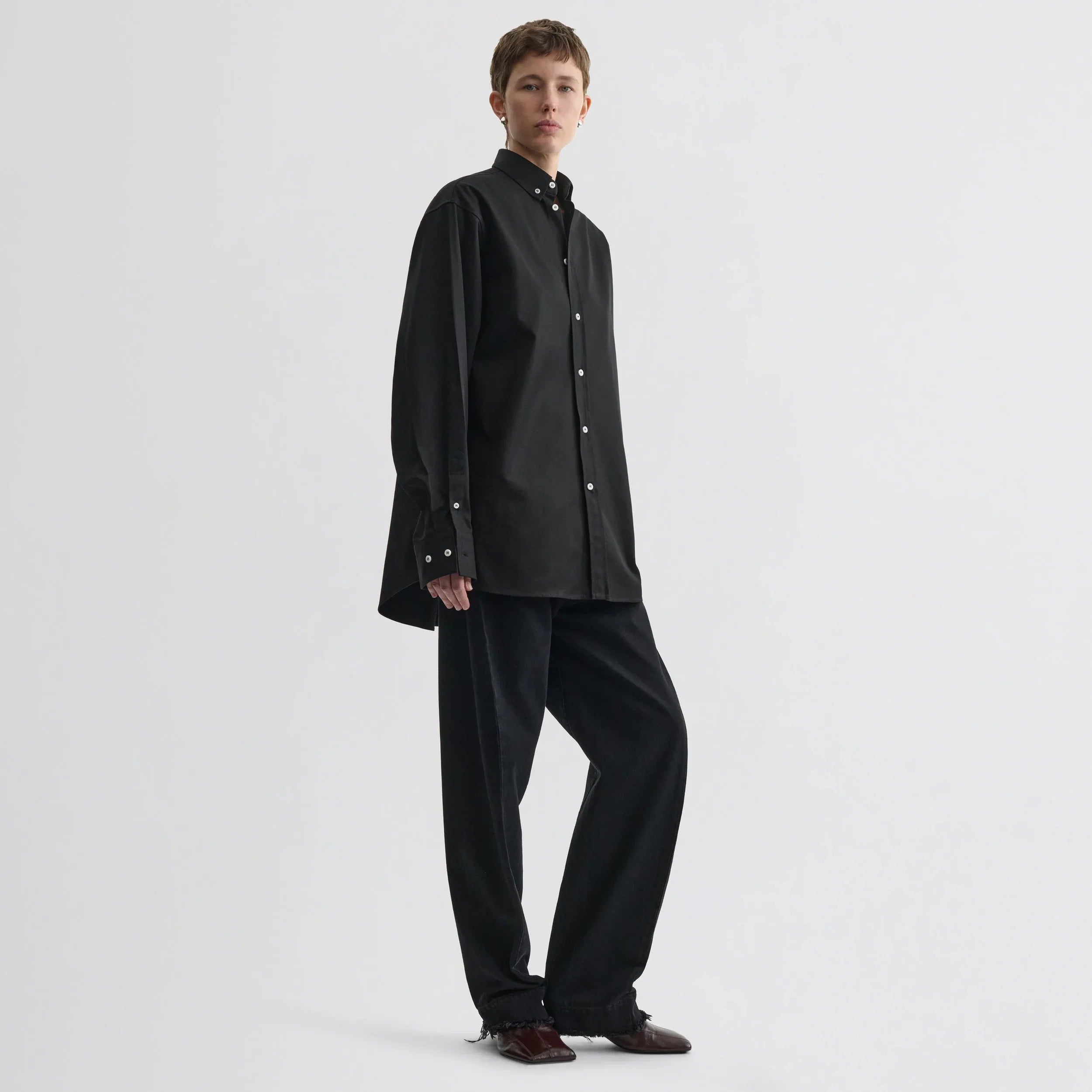 BUTTON COLLAR SHIRT | black cotton -